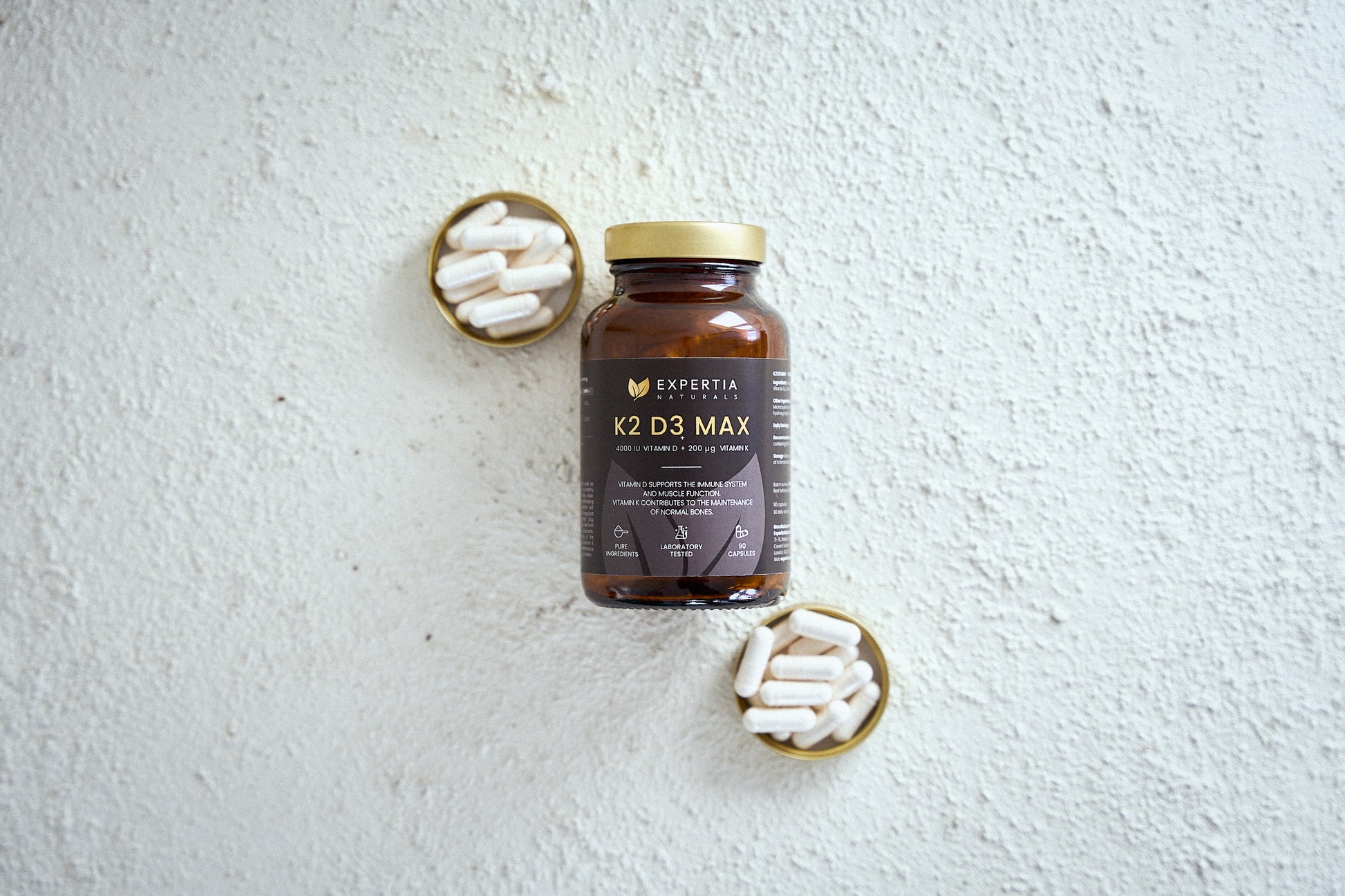 Our vitamin K2 is a natural form obtained from traditional Japanese natto, and vitamin D3 is sourced from natural lichen.