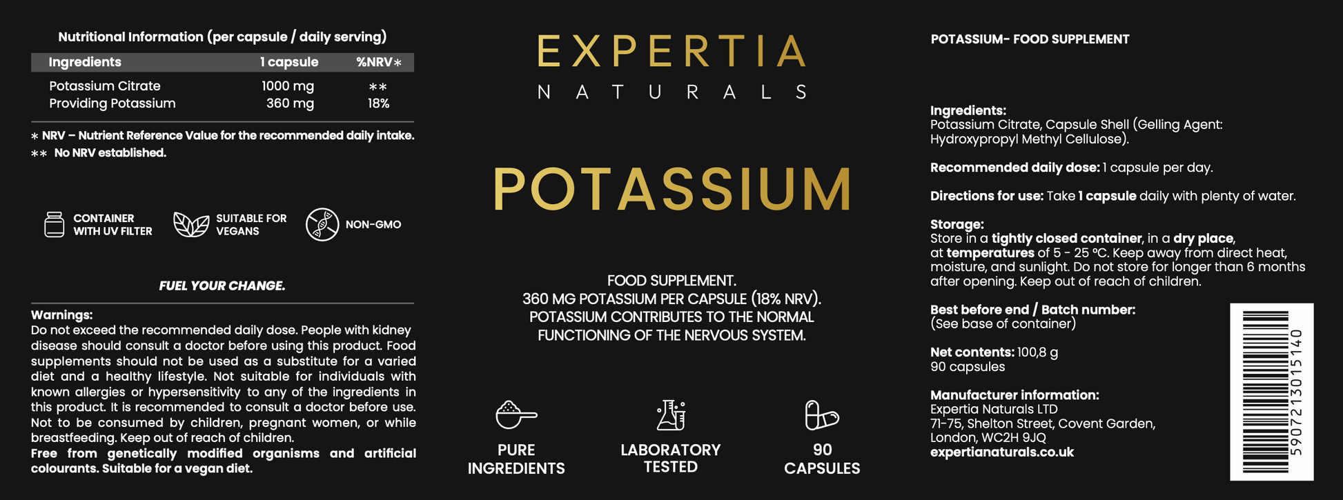 POTASSIUM is a food supplement containing potassium citrate, a well-absorbed form of potassium.